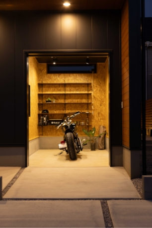 バイクガレージ コンパクトに実現する趣味空間