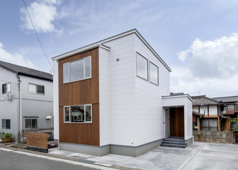 限られた敷地の中でのプランニング、普段は1階に設置することが多い水回りを2階に設置し広々と家族が集まれるLDKを実現しました。
