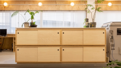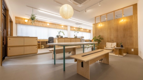 ⾃然素材やナチュラルな素材をふんだんに使った⼼地よい空間です。⽊の⾹りに包まれる落ち着いた空間での打ち合わせが可能です。