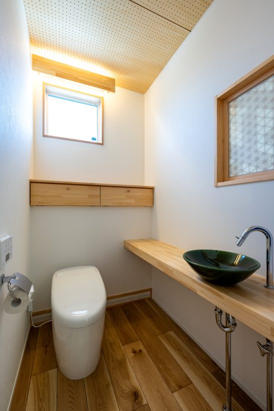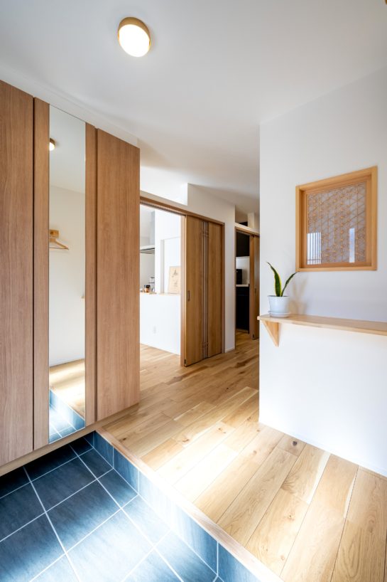和モダンの外観デザインや玄関にしつらえた組子障子により、落ち着いた和の雰囲気を楽しめる家になりました。